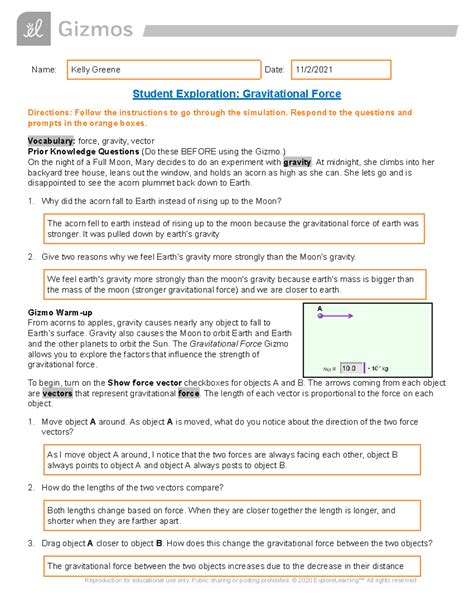 Read student exploration gravitational force answer key iBooks BookBoon